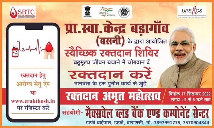 दृढ़ व्यक्तित्व के धनी अपार ऊर्जा के स्रोत नव विचारधारा के संवर्धक प्रभावशाली कार्यसाधक यथार्थवादी आदर्शवादी कड़े अनुशासन के आग्रही हमारे देश के यशस्वी प्रधानमंत्री श्री नरेंद्र मोदी जी के जन्मदिन के शुभ अवसर पर रक्तदान का आयोजन किया गया
